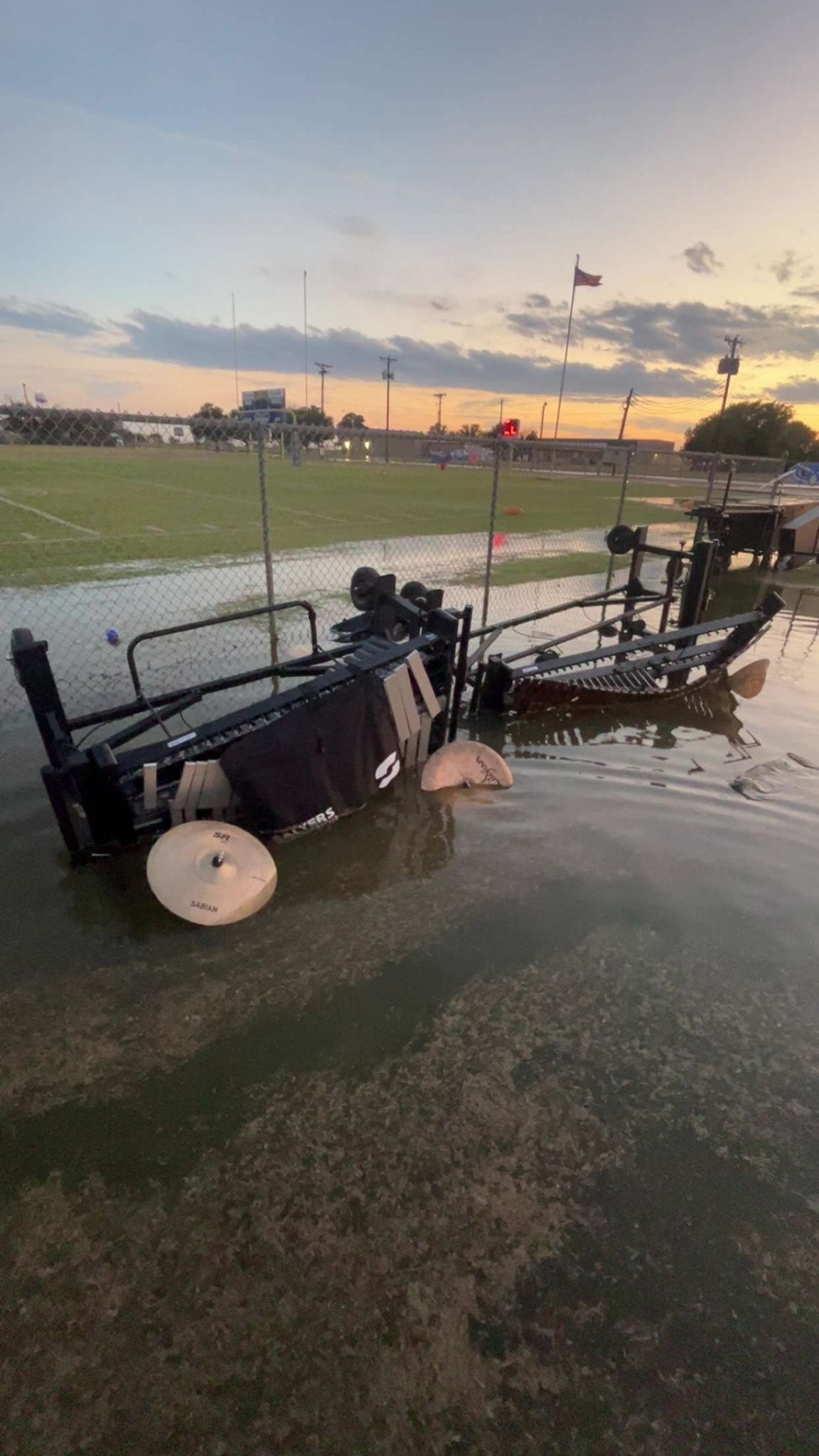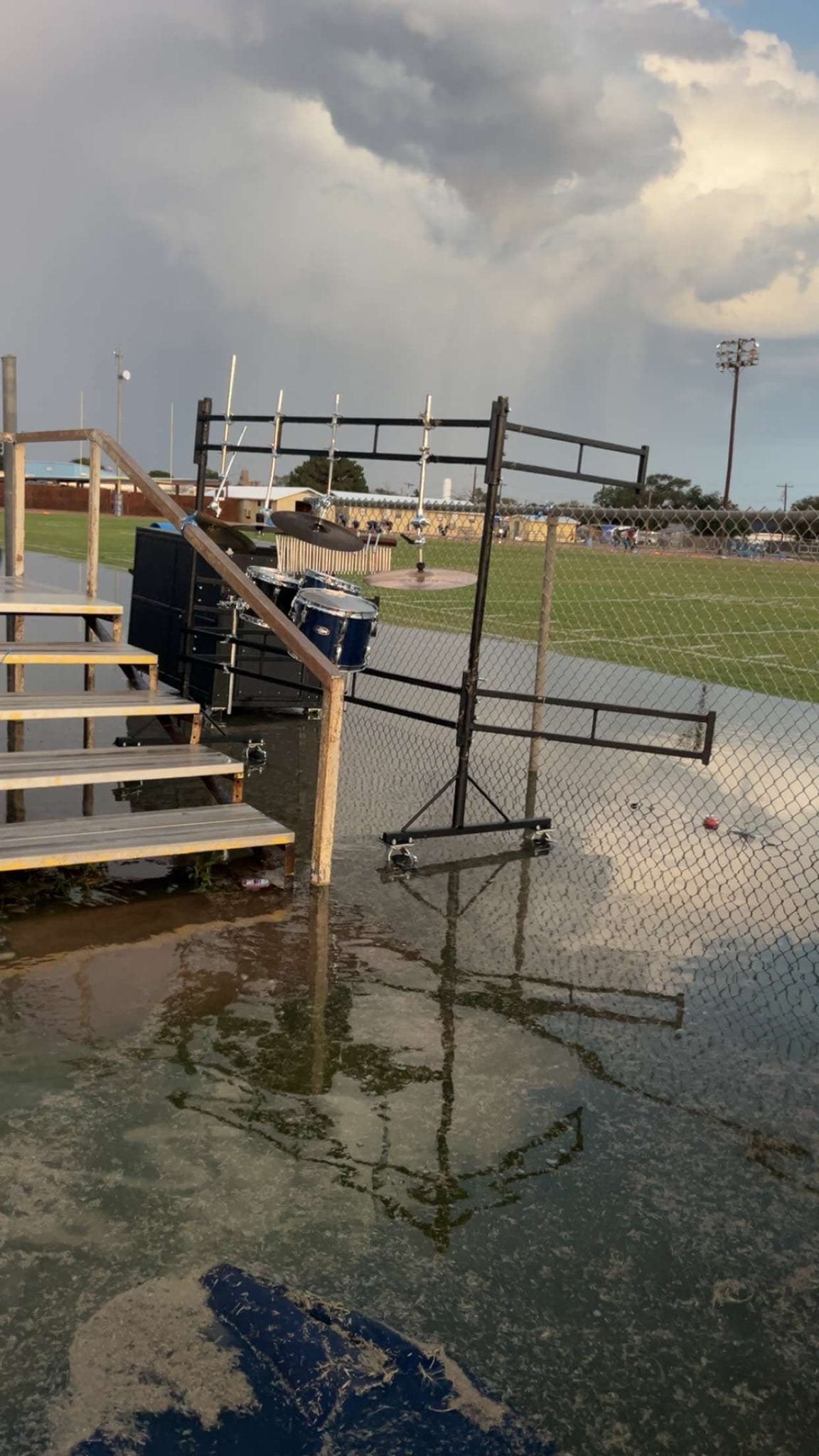 The varsity Football game was moved to New deal due to the amount of rain and storm damage. The High School Band received Damage to multiple instruments as seen in photos below.